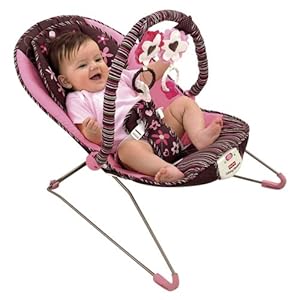 Fisher Price Beautiful Garden Comfy Time Bouncer: Comfort fisher-price bouncer, toybar with 2 toys gross motor skills, tactile (touch) stimulation, captures baby's attention padded seat, buckle closure, features 2-point harness removable toy bar soothing vibration. Get this garden comfy time bouncers for only $34.99.