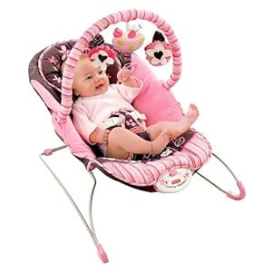 Fisher-Price Beautiful Garden Bouncer: Comfort fisher-price bouncer, 3 toys hand and eye coordination, tactile (touch) stimulation, sounds engage baby, captures baby's attention, padded seat, buckle closure, features 3-point harness removable toy bar, plush head support, soothing vibration, curved frame, wide base for stability. Get this fisher price baby bouncer for only $34.99.