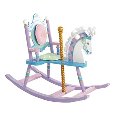 Levels of Discovery Carousel Rocking Horse: This rocking chair is in horse shape which comes with a silky satin mane and ears with a gilded wooden pole and removable padded backrest and seat cushion. 18 mos to 3 yrs. kids can use it. It has 50-lb. Maximum weight limit. Measurement is 27Hx15Wx35D". It Comes with a special understamp beneath seat, you can personalize and a photo greeting card so kids can say "Thank You". List Price is $149.95 but now get it for $127.45. It means you can save up to 15%.